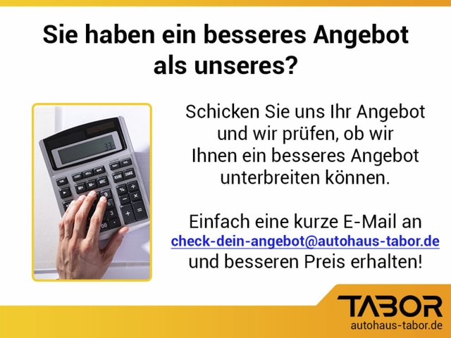+++ Aktion: Tabor-Inzahlungnahme-Bonus: Jetzt bei Inzahlungnahme bis zu 1.000 EUR on top erhalten! +++- Hierbei handelt es sich um einen Neuwagen mit Aktionszulassung, kein Reimport und selbstverständlich in deutscher Ausführung.